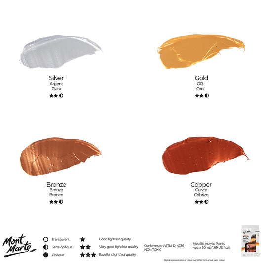 Mont Marte | Metallic Acrylic Paint Set | 4pc x 50ml